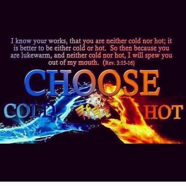 15 I know your deeds, that you are neither cold nor hot. I wish you were either one or the other!16 So, because you are lukewarm—neither hot nor cold—I am about to spit you out of my mouth.