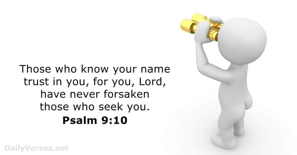 Those who know your name trust in you, for you, Lord , have never forsaken those who seek you. – Psalms 9:10 NIV