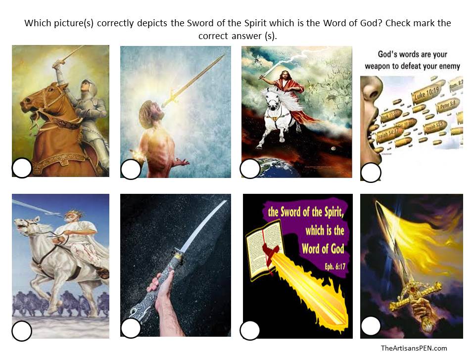 Can you identify which pictures portray the truth about the sword of the Spirit? (from left to right)