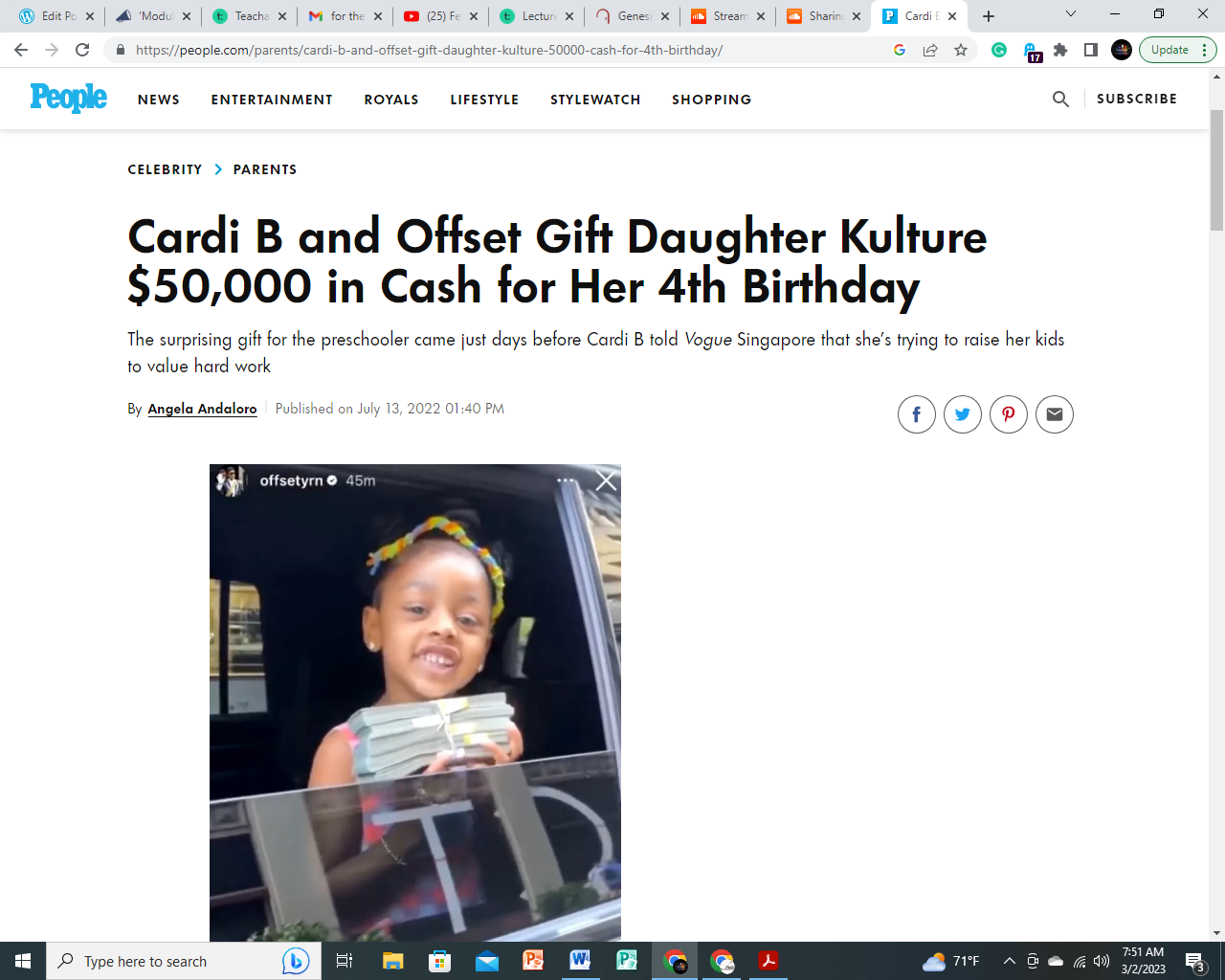 Last year, Cardi B, and her husband, Offset, gave their daughter, Kulture Kiari, $50,000. This beautiful baby is 4 years old.