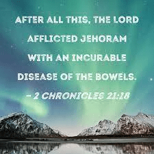 King Jehoshaphat’s oldest son King Jehoram was wicked so much so that God struck him with an incurable disease of the bowels