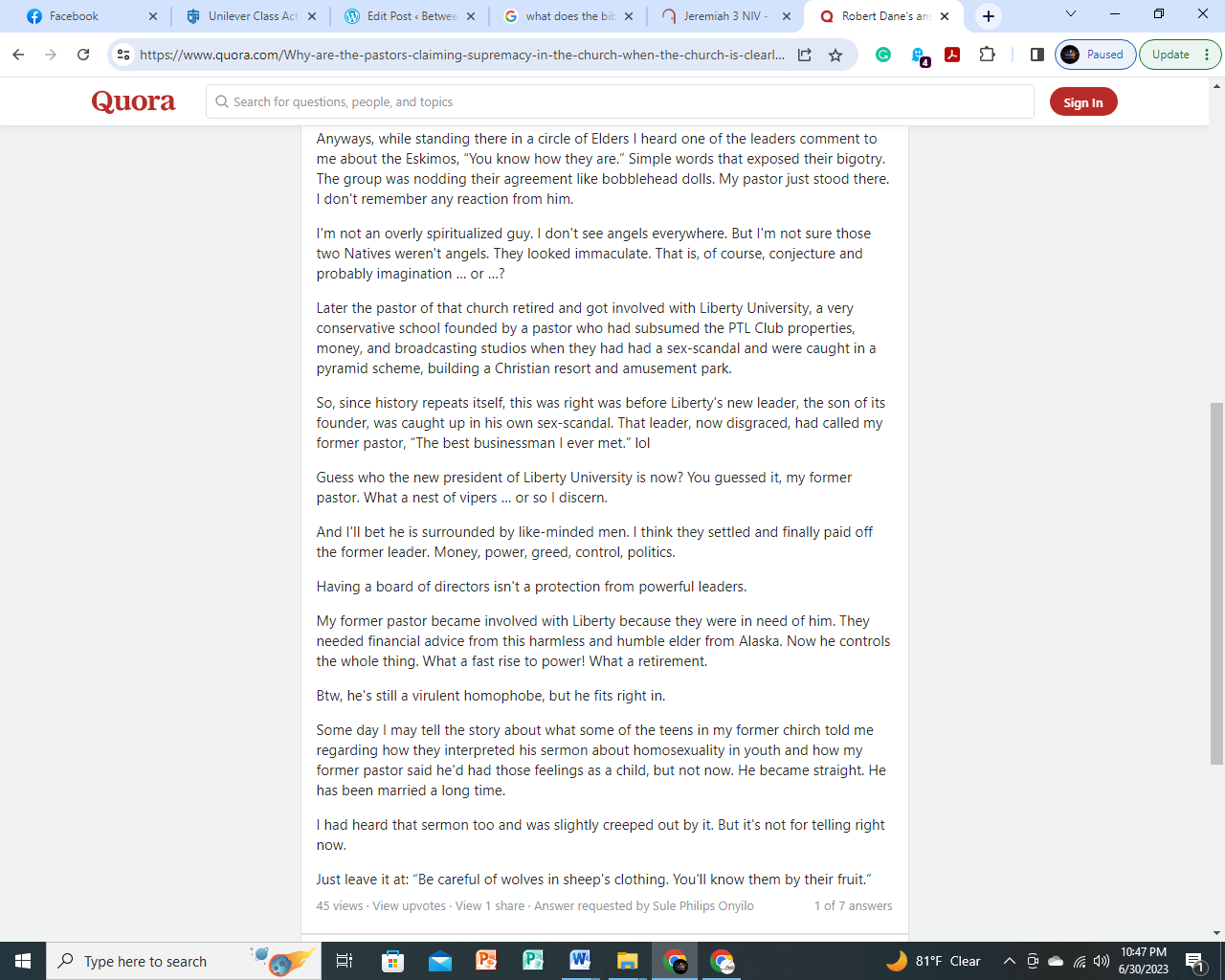 Quora had a lot of comments on the very subject of the firing of pastors. Here is another one that stood out to me.