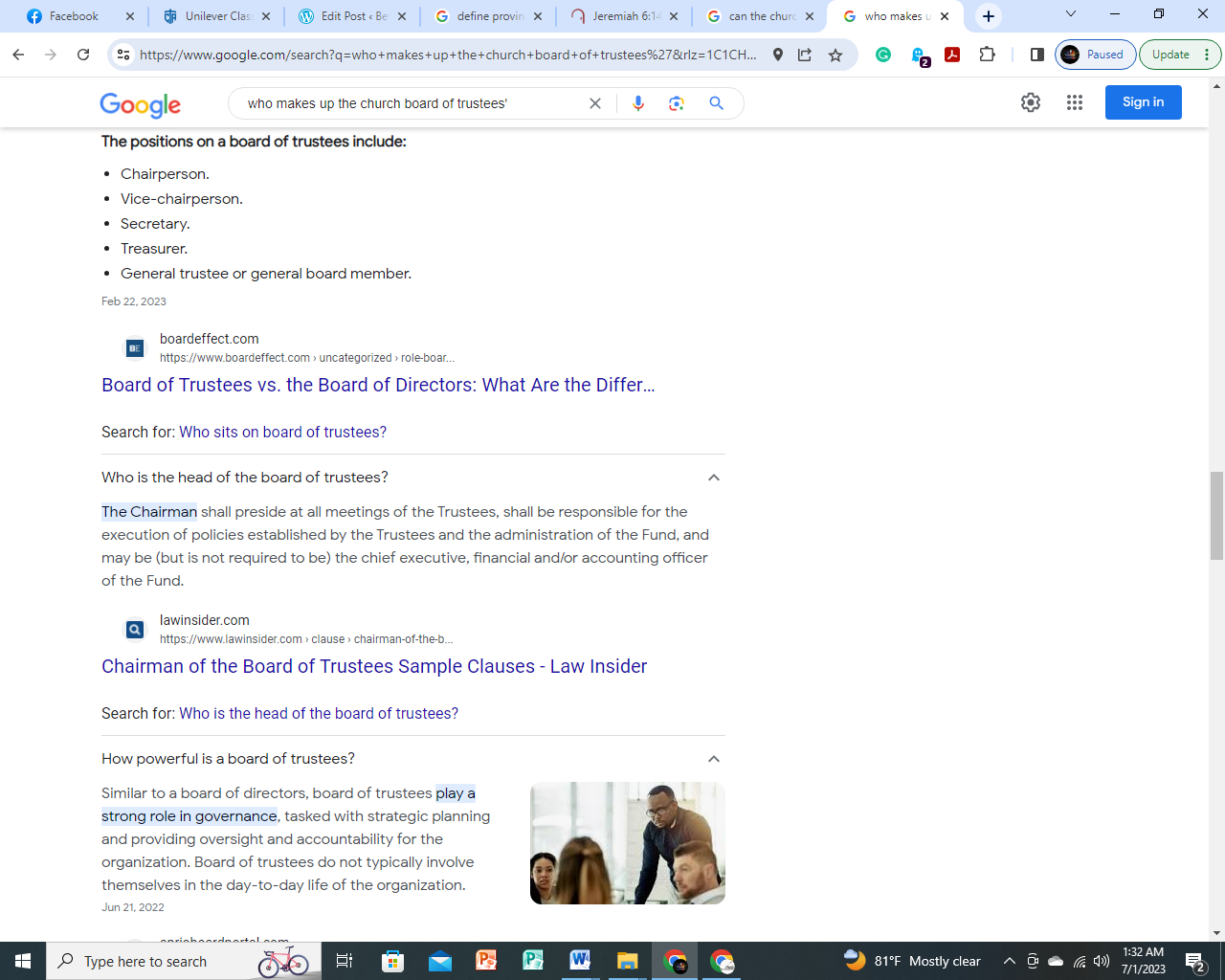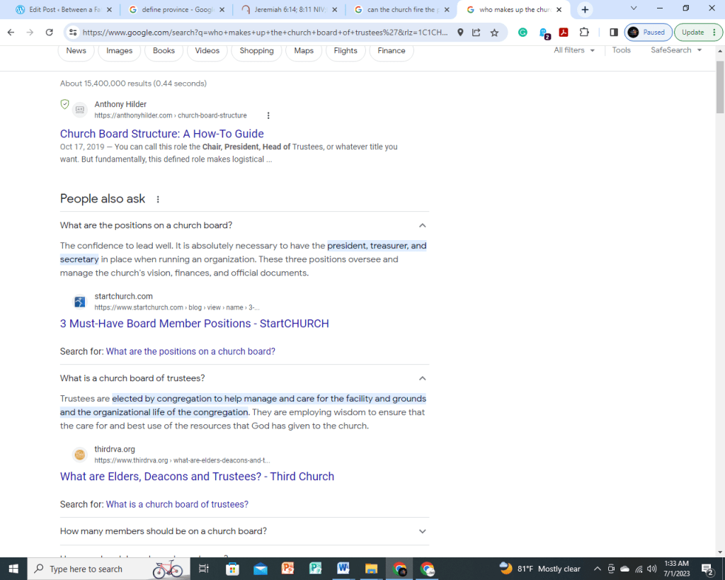 Who makes up the church board of trustees? There is so much that is written on church boards and trustees. I would encourage you to google it if it is something that you are interested in knowing more about.