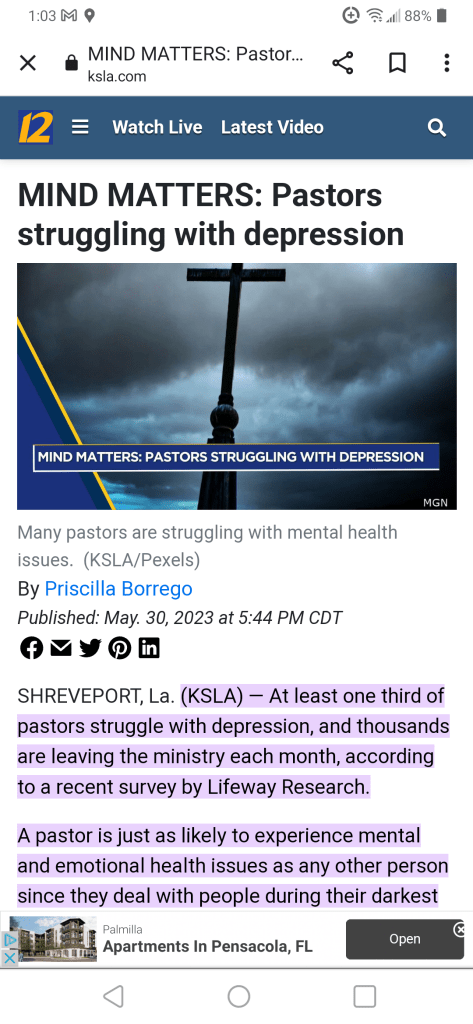 DADDY, I struggled writing this. But I will keep going. Your will be done. I just ask one thing. The pastors who are struggling with depression, I lift them up to you. I stand in the gap for them. I ask that someone see them and help them to lay in your presence so that they can be refilled. They need to be dressed in the Armor that you have given us. DADDY, I did the website that teaches it. But I don’t know how to get people to take advantage of it. You said one plants, one waters, but you give the growth. Its planted DADDY.
