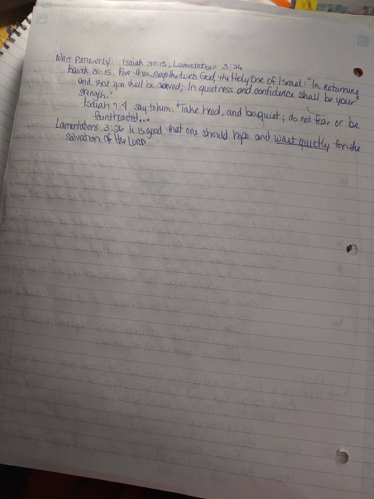 I sat with Daddy this morning on the topic of resting in Him and waiting patiently for Him. It was an amazing lesson of which I was shown an area where I have not been resting.