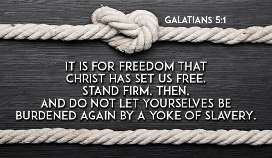 As Galatians 5:1 says, “Stand fast therefore in the liberty where with Christ has made us free, and not be entangled again with the yoke of bondage.”