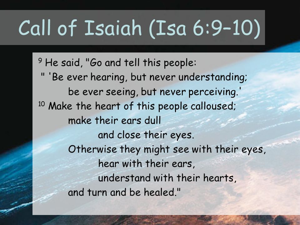 This again takes me back to the commissioning of Isaiah, and what Isaiah was told in verse 10 as shown above.