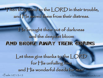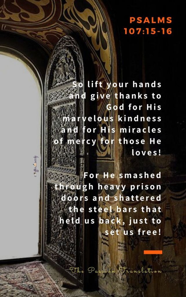 Verse 14 says it is God who brings us out of the darkness. It is God who breaks the chains.